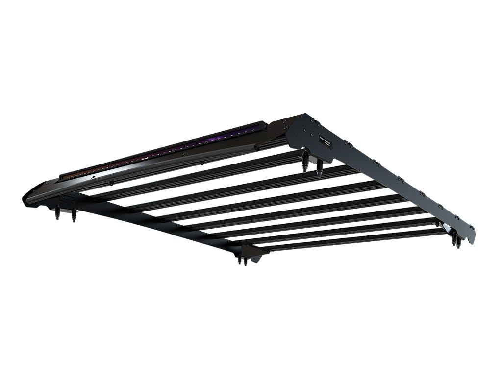 This low-profile flat deck Slimsport rack has a load carrying area of 1610mm (63.4”) L x 1295mm (51”) W. The sleek side rails have integrated mounting feet. The mounting feet also have additional brace brackets for added strength. The high-strength aluminum slats have T-slots suitable for all Front Runner Dometic top mount accessories. Easily add on the Rack Accessory Mounting Bracket RRAC182 for most Front Runner side mount accessories (sold separately). The RRAC385, it has a 40” cutout to allow the use of the LIGH213 (sold separately). Fitment guide and all mounting hardware included. Note: No drilling required for installation. Note: Under Rack Tables and some side mount accessories such as JADA010 and RRAC103 are not compatible with the Slimsport rack kit range. All Front Runner Racks are backed by a Limited Lifetime Warranty*