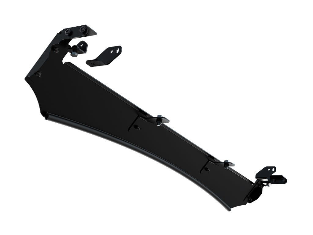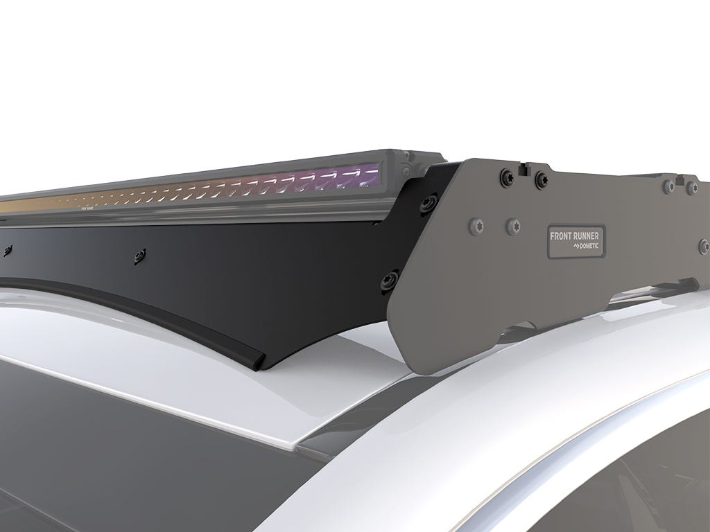 Lightbar wind fairing for KSSO005T. Allows fitment of LIGH213. Air flows easily over the rack and accessories, reducing drag and wind noise. Helps fuel consumption while carrying bulky loads. A durable rubber beading is fitted to the bottom edge of the Wind Fairing to help seal any gaps and act as a roof guard when traveling over rough terrain. Brackets and installation hardware included.