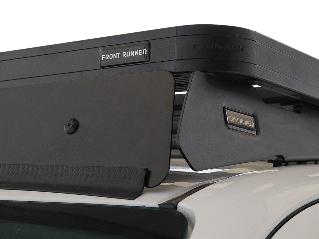 Get a bold new overlanding look in minutes. Create a solid appearance by covering the gap from roof to rack. Air flows easily over the rack and accessories, reducing drag and wind noise. Helps fuel consumption while carrying bulky loads. Easily secures to your roof rack in three simple steps. Adjustable brackets allow the Wind Fairing to be correctly angled and positioned on your vehicle. A durable rubber blade is fitted to the bottom edge of the Wind Fairing to help seal any gaps and act as a roof guard when traveling over rough terrain. An optional clear protective strip is included to eliminate any potential rare minor scuffing caused by heavy dust.